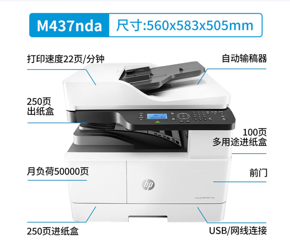 惠普(HP)A3打印机M437nda/A3/A4黑白激光复印机